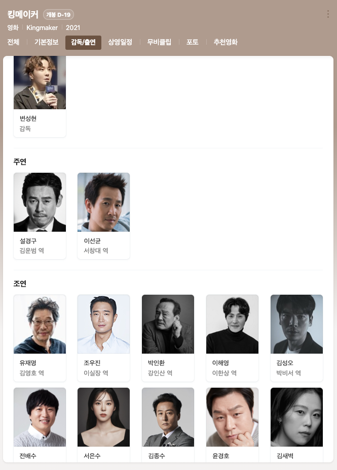 뿐만 아니라 영화 킹메이커에 등장하는 조연분들의 라인업이 굉장히 화려합니다.