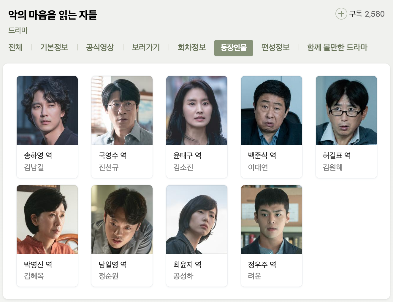 이번 드라마에서는 프로파일러 역할을 맡았는데요, 진선규 배우, 김소진 배우까지 화려한 라인업을 자랑하며