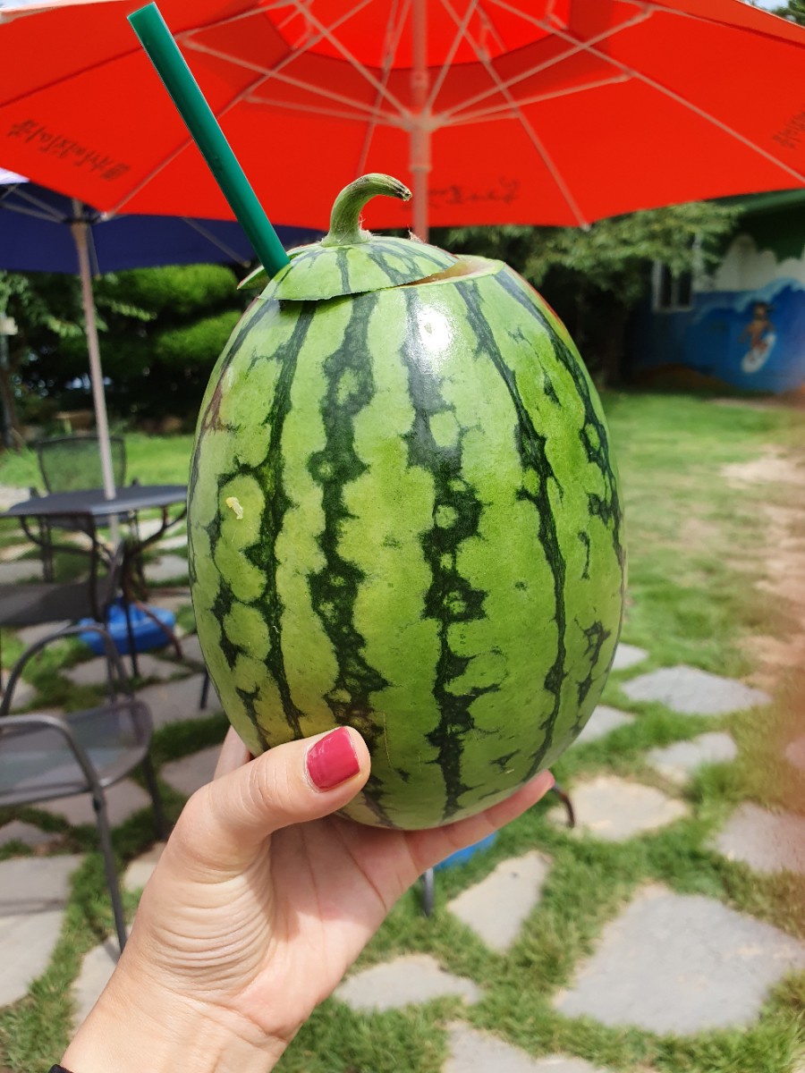작은 수박 하나를 그대로 갈아주는 서비스~