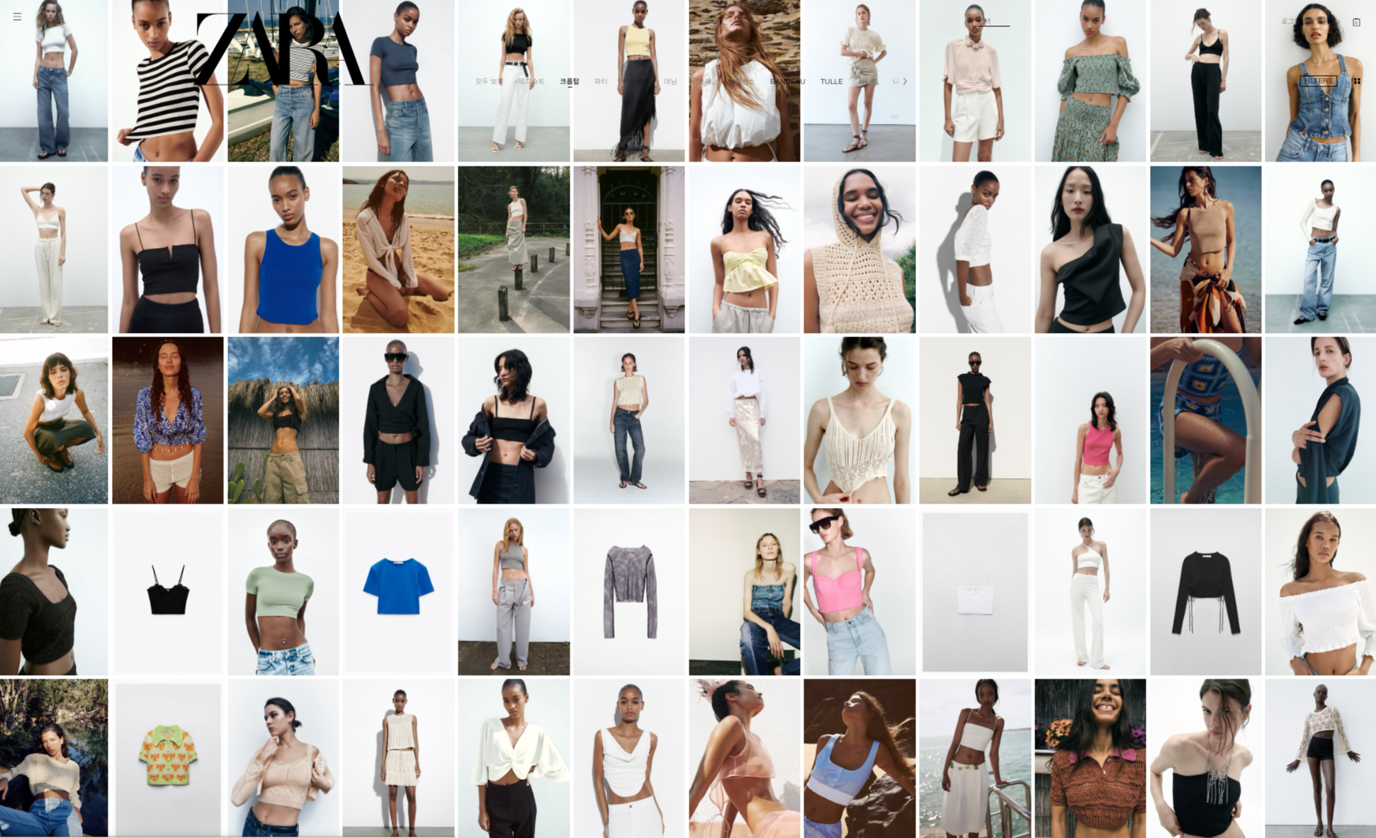 자라 홈페이지에 들어가시면 pc로 한눈에 상품을 볼 수 있는데요 오른쪽 필터옆 아이콘을 선택해서 원하는 만큼의 상품을 한눈에 볼수 있도록 조정이 가능합니다.