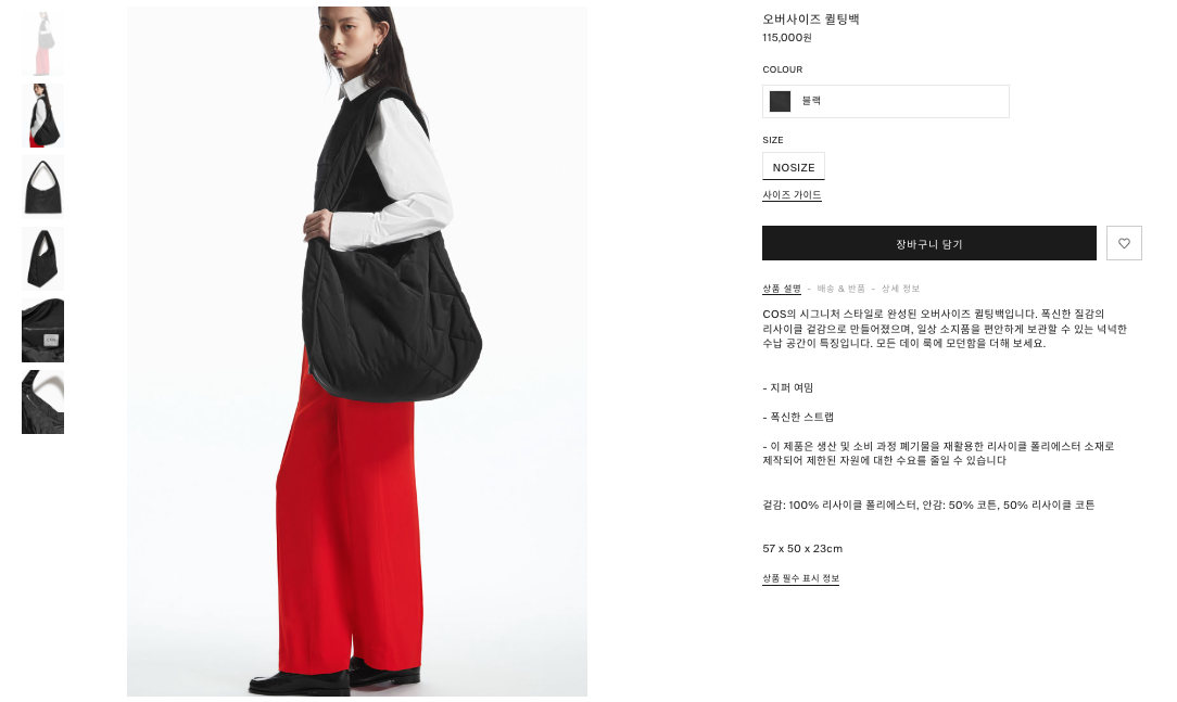 안타깝지만 코스의 주요 인기 제품인 코스 오버사이즈 퀼팅백은 세일을 하지 않네요.