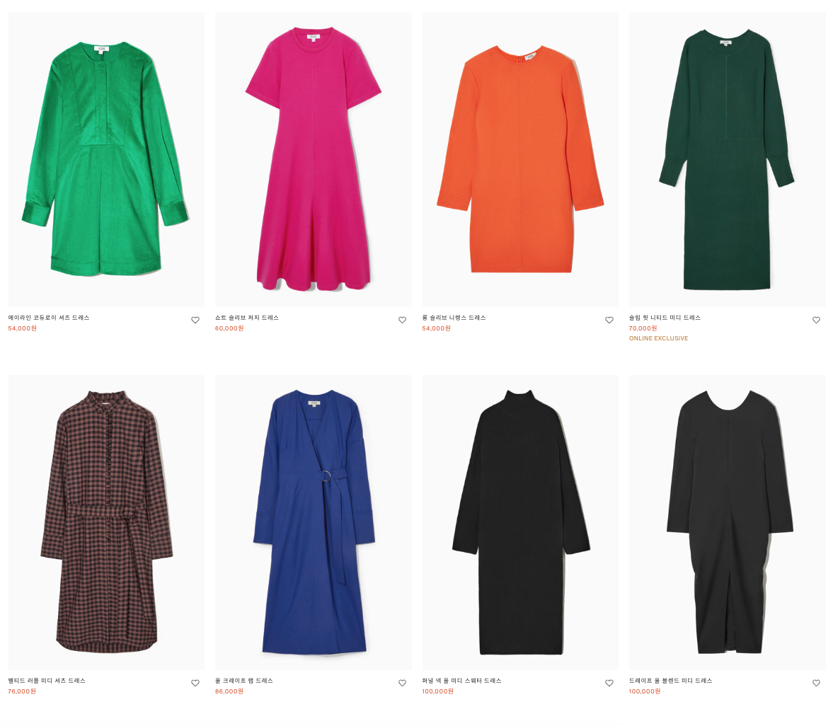 자라의 드레스가 평소에 출근룩 또는 캐주얼한 느낌이라면 코스는 좀 더 드레스업을 하고 싶은 날 또는 특별한 행사 또는 파티를 위한 룩을 찾을 때 유용해 보입니다.