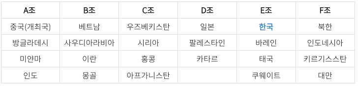 한국은 E조에 편성되어 바레인, 태국, 쿠웨이트와 함께 경기를 치르게 됩니다. 항정우 게임 대한민국 축구 감독은 황선홍 감독이며, 특이한 점은 기존 아시안게임에서 23세 연령제한에서 코로나로 인해 연기된 만큼 연령이 24세 이하로 결정되어서 많은 선수들이 뛸 수 있을 것으로 보입니다.