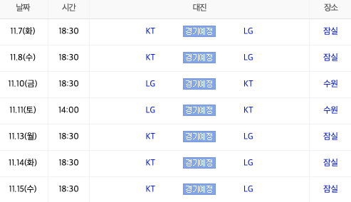 KS 2차전11.08(수) 18:30 잠실야구장