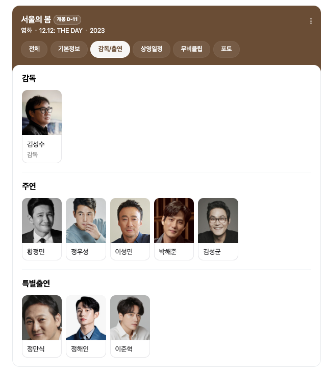 황정민, 정우성 주연의 영화 서울의 봄이 11월 22일 개봉합니다.