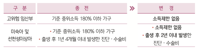 서울시는 고위험 임신 및 고위험 신생아의 적정 치료·관리에 필요한 의료비를 확대 지원하여 산모와 환아가정의 경제적 부담경감 및 영아의 건강한 성장발달을 응원하는 차원에서 의료비 지원을 확대 한다고 합니다.