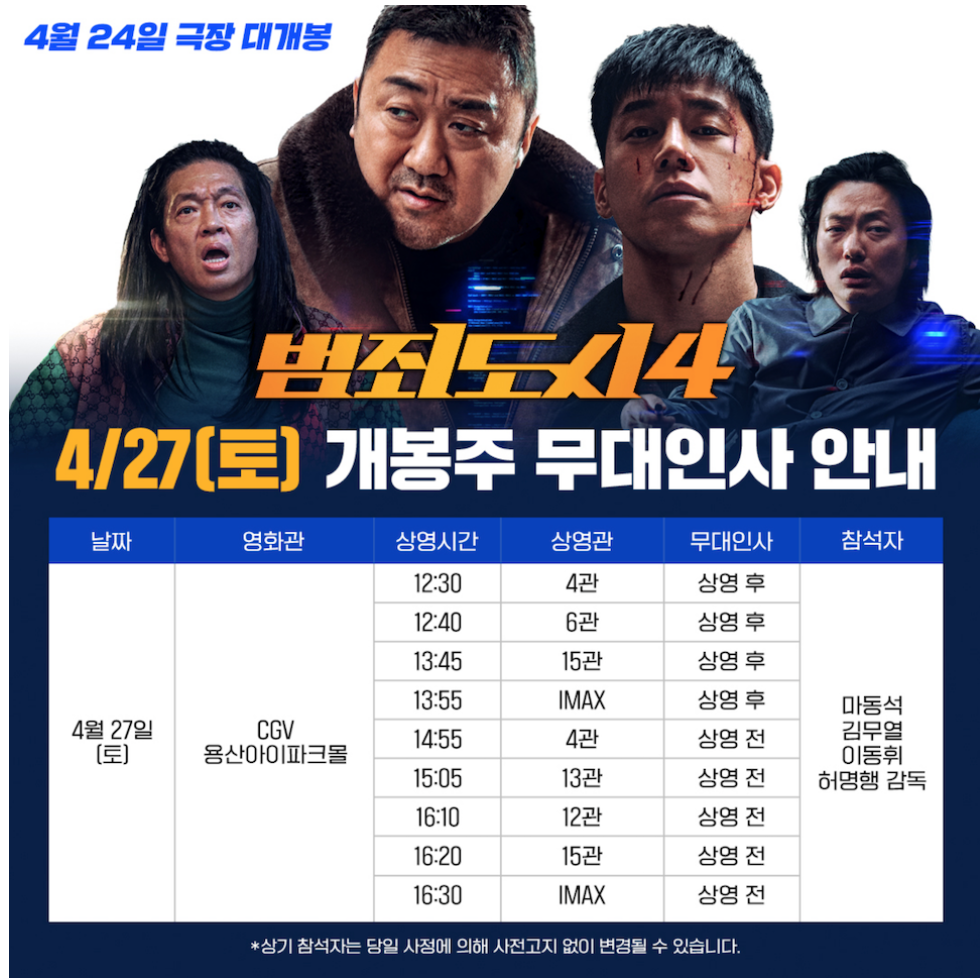 마동석의 범죄도시4의 개봉이 다가 오고 있습니다.