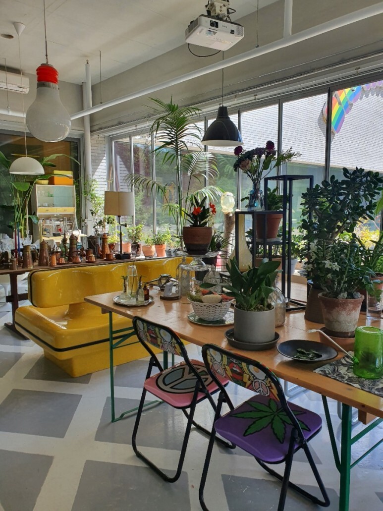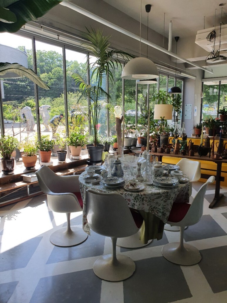 어디 프랑스에 와 있는거 같기도 하고 미드 센츄리에 있는 것 같기도 하고 식물들과 모든 그릇들과 눈이 절로 돌아갑니다.